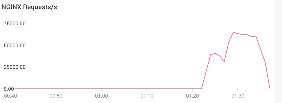 In diesem Beispiel haben wir es mit einem direkten Angriff auf meinen Webserver zu tun. 75000 requests pro Sekunde mögen hier wenig aussehen; fast kein normaler Webserver kann diese allerdings konstant aushalten.