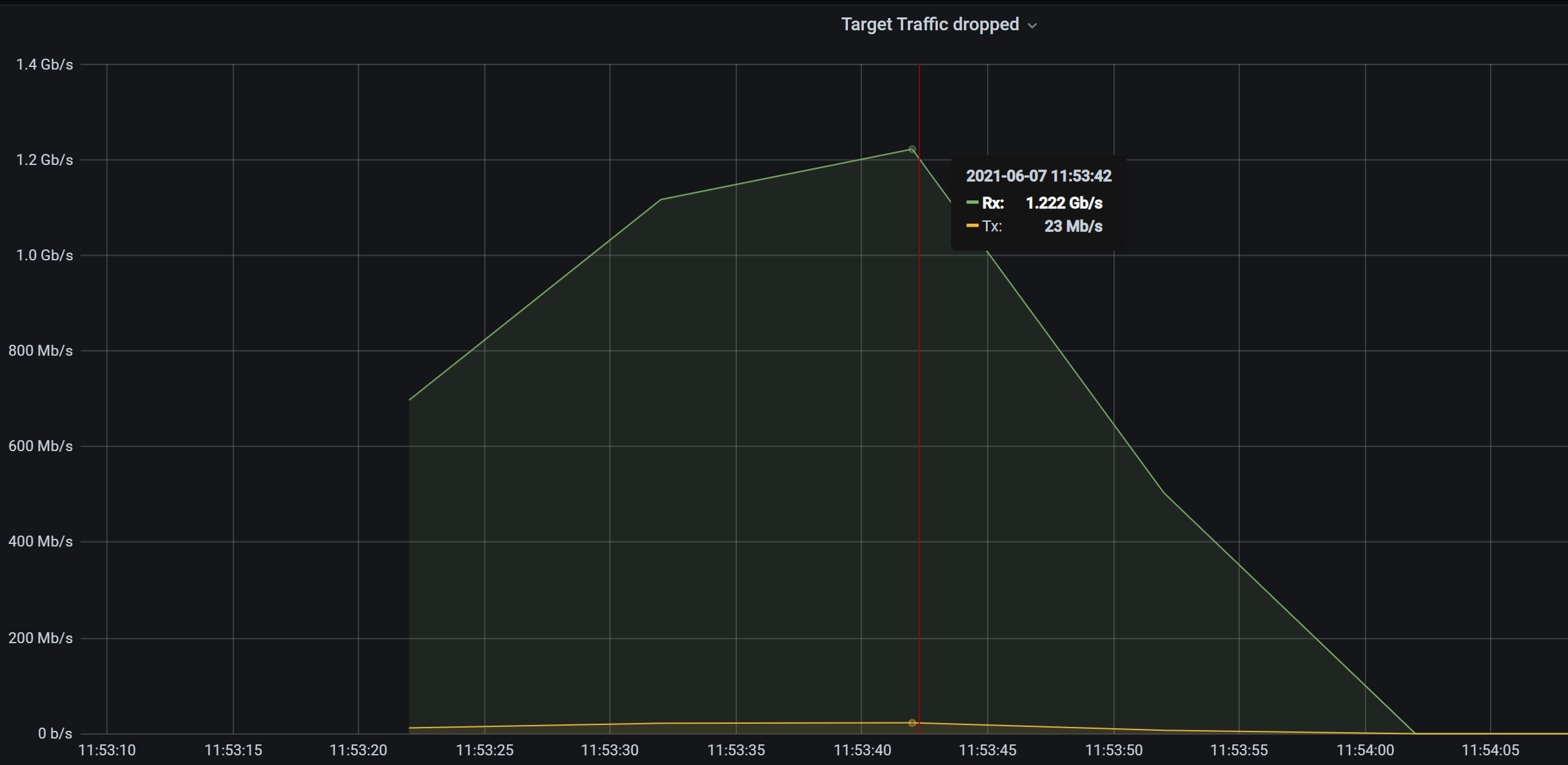 In diesem Beispiel haben wir es mit einem direkten Angriff auf meinen Webserver zu tun. 75000 requests pro Sekunde mögen hier wenig aussehen; fast kein normaler Webserver kann diese allerdings konstant aushalten.